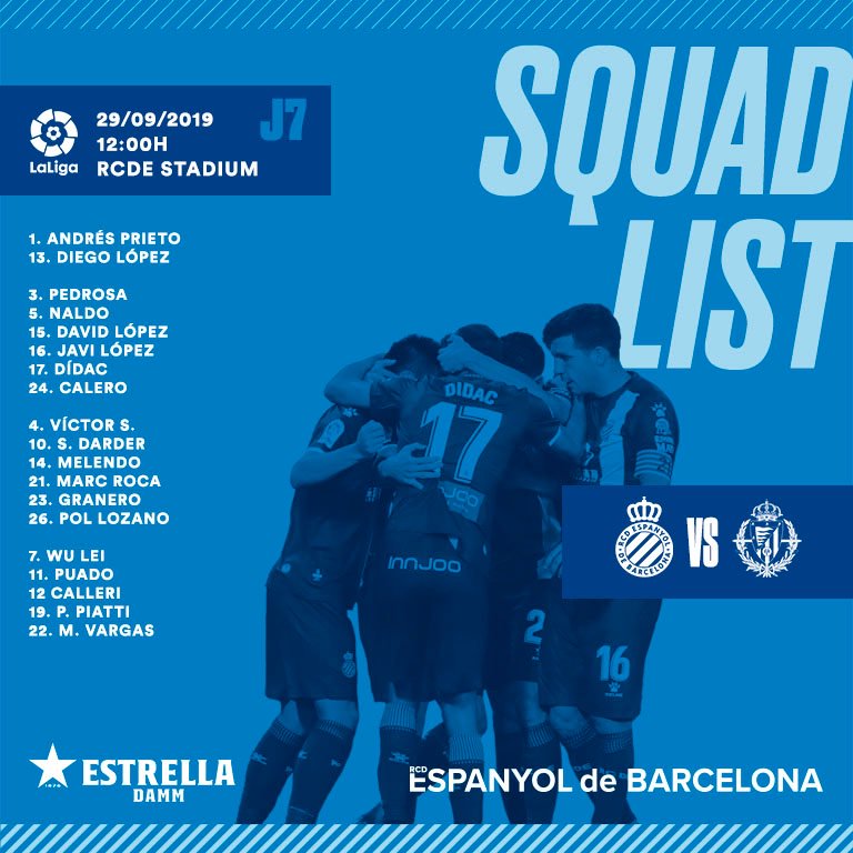Espanyol: Diego Lopez; Pedrosa, Calero, Naldo, Javi López; Darder, Vitor Sanchez, Marc Roca, Melendo; Calleri, Wu Lei.