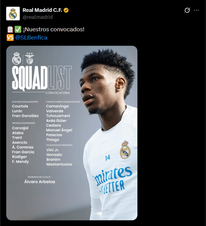La ausencia de Mbappé supone un golpe importante para su equipo, que pierde a una de sus figuras clave en la delantera en un encuentro crucial de la temporada. Su capacidad goleadora, desborde y liderazgo ofensivo dejarán un vacío significativo en la alineación titular hasta que pueda volver a estar disponible. Un vacío que el cuadro blanco tratará de paliar con Gonzalo, quien ha respondido positivamente a las oportunidades brindadas y que buscará aportar con su olfato goleador. También Arbeloa confía en conseguir esta noche la mejor versión de Vinícius Jr, que ya fue clave ante los lusos en el partido de ida y que se erige como la gran figura de los merengues para este encuentro.